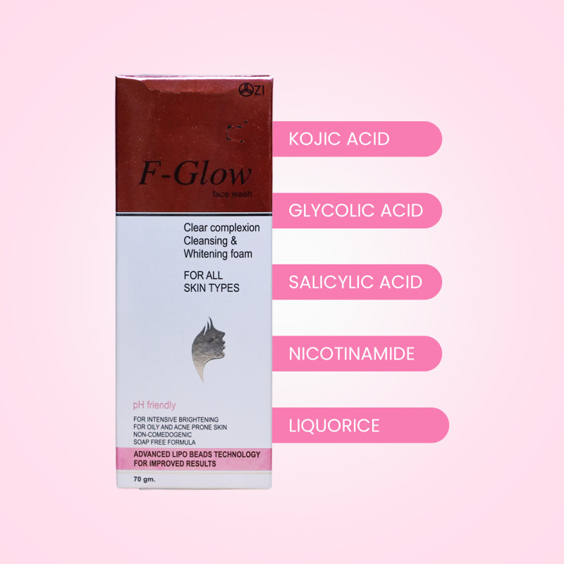 Direction: Splash your face with plenty of water. Then rub those microbeads into a foamy lather in your hand. Massage the creamy foam gently onto your face in a circular motion. Rinse direct contact with eyes. If Contact occurs, rinse thoroughly with water. Experience an oil-free cleanser with a twist, Moisture-Rich swirls and Exfoliating microbeads, work together to target on dirt and impurities while improving complexion. Its foamy, rich formula is infused with skin brightening & lightening actives for a fresh, well-rested look & help achieve flawless, blemish free, whiter, younger looking radiantly healthy skin, Regular use of F-glow creamy skin lightening face wash with help to achieve lighten the skin complexion.