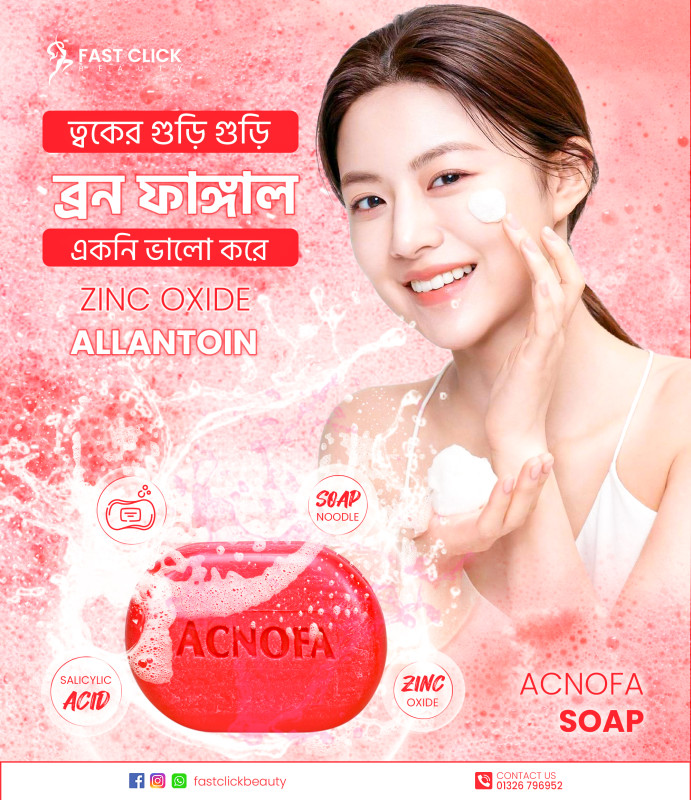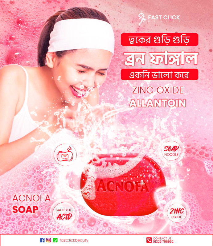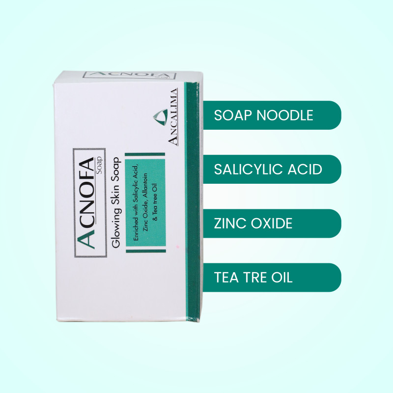 Acnofa Soap gives a soft and fresh feeling and controls unworn sebum. It contains salicylic acid & tea tree oil that help in rooting out acne. It helps open up closed pores, fight against acne causing bacteria and does not cause excessive dryness.