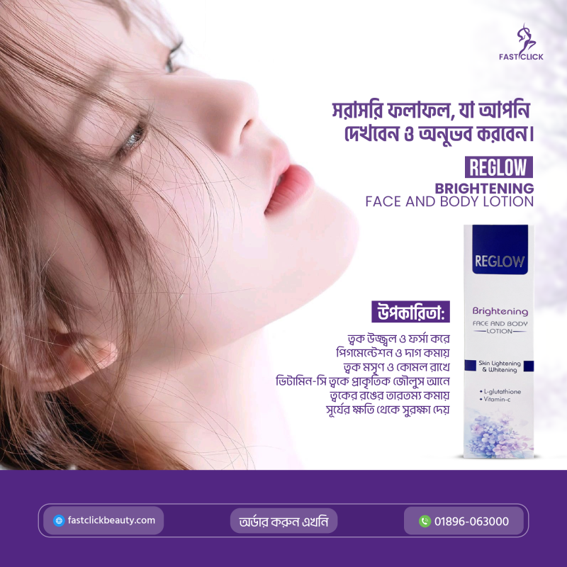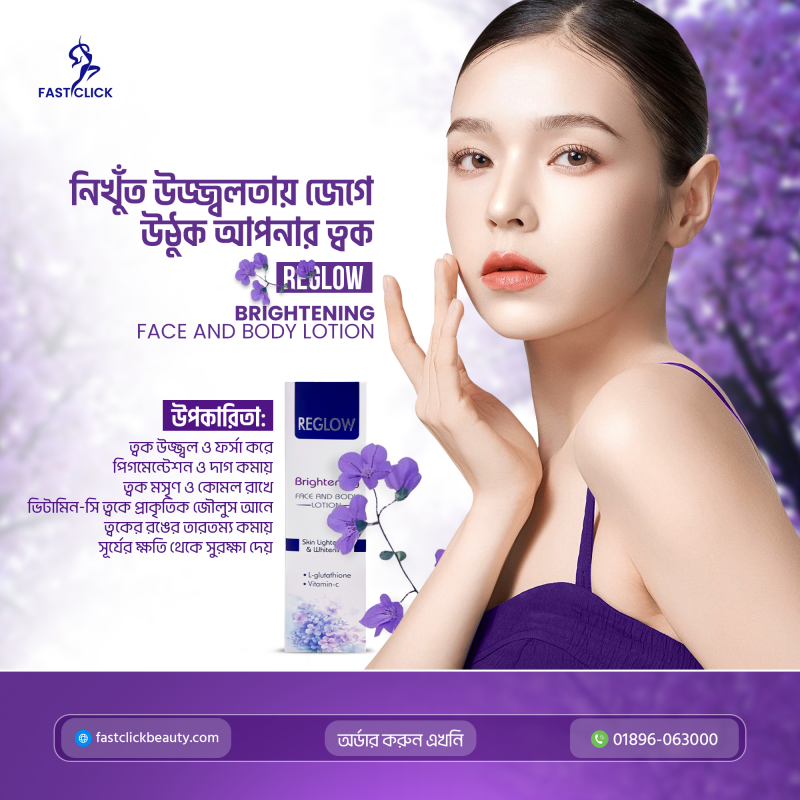 The Reglow Brightening Face and Body Lotion (also referred to as the "Skin Boosting Body Lotion") contains several key ingredients designed for brightening and moisturizing the skin.