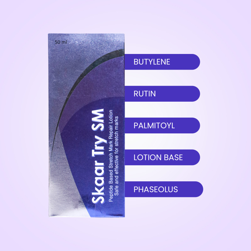 Stretch Mark Repair: Skaar Try SM Lotion targets stretch marks, improving their appearance and promoting skin elasticity.